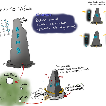 But top-down maps aren't the only things I like to visualize at this stage. I also sketch puzzle designs, concept art for points of interest, or general mood pieces during pre-production, especially in group projects, to help present an idea or convey the feeling I want within a specific level or area